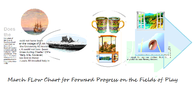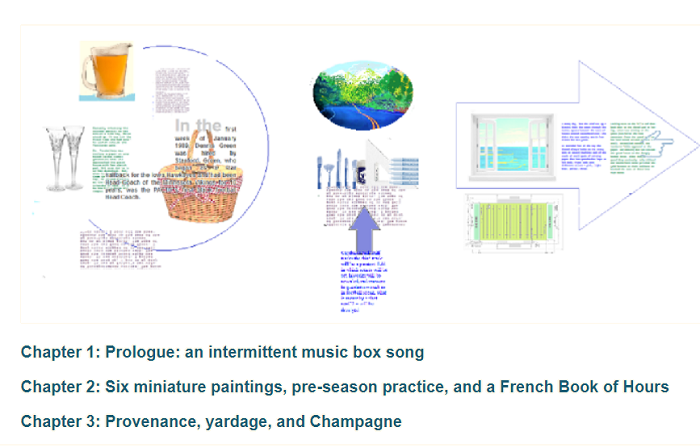 In practice, every time I reach the end of a 3-lexia set and begin again with a paratext, there is a moment of dismay when I realize that a forthcoming detail-laden paratext will be difficult to write. And yet -- when, for instance, the reveal of the identity of the illustrator of the fictional Music Box Book of Hours brought up questions of the length of the 15th century shipboard journey to the Grand Banks of Newfoundland; of the interaction between scribes and illustrators in an atelier in the Château de Plessis-lèz-Tours; and of the role of Anne of Brittany in the commission of the Music Box Book of Hours -- I am always surprised at how well detail works in the paratext field of Forward Progress on the Fields of Play.