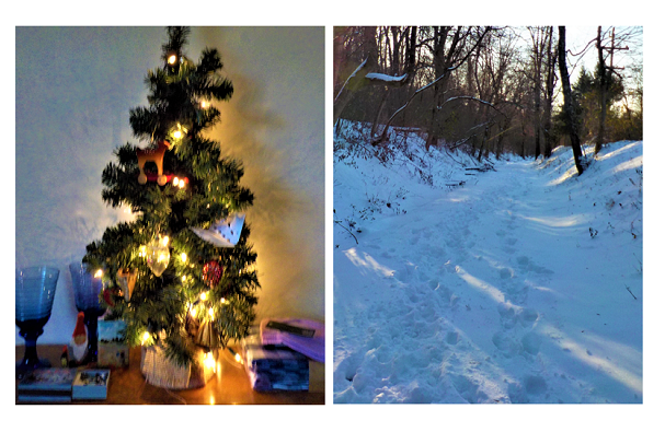 December arrived with the beginning of what some would call bleak winter, but -- having spent so much of my life in California away from wildly varying seasons -- the bare trees and slowly increasing cold bring memories of winter childhoods.in New England. Snow will come, and in my dreams, I will be able to travel snow-covered trails on cross country skis.